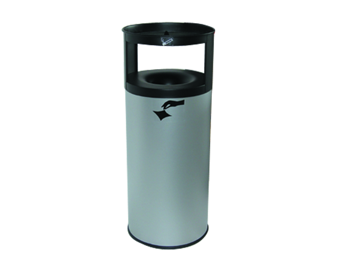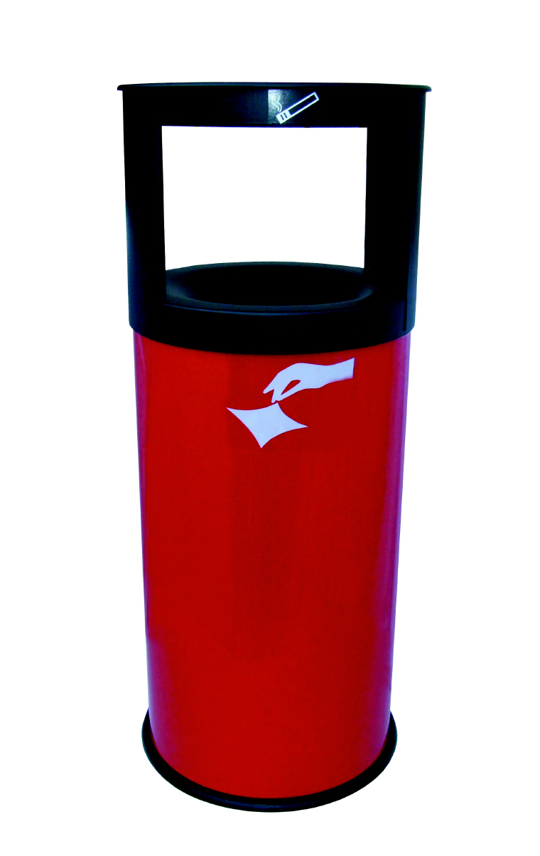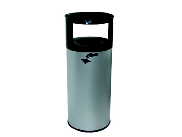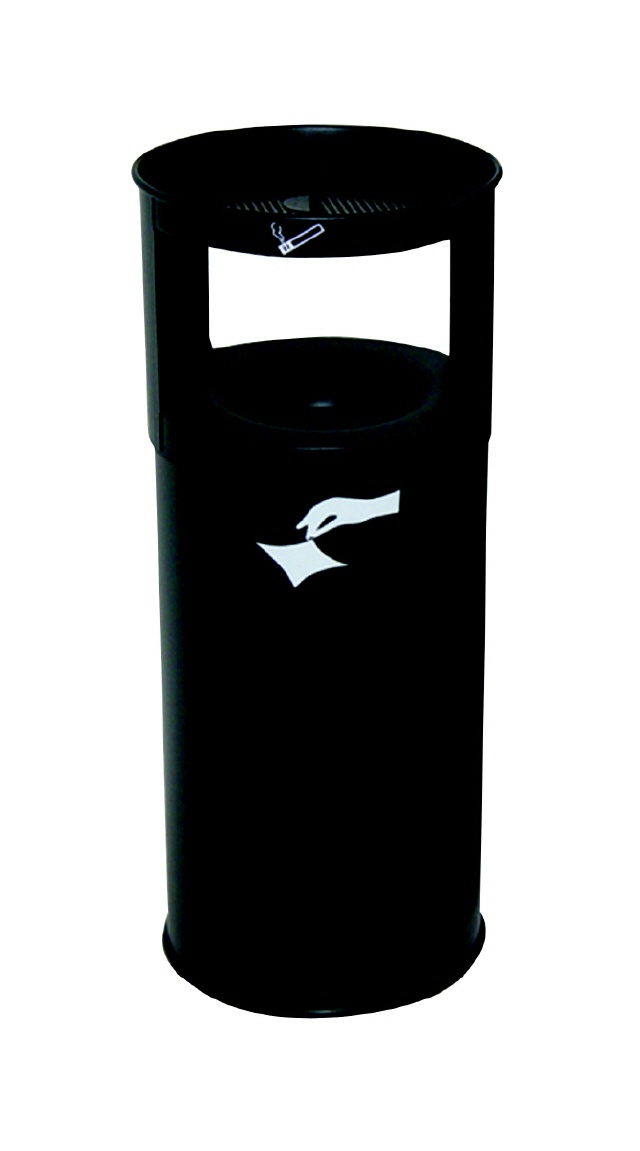 Kombination aus Ascher und Papierkorb. Konstruktion aus Stahlblech mit resistenter Pulverbeschichtung. Bodenring aus hitzebeständigem Kautschuk.