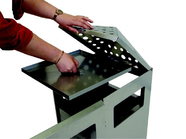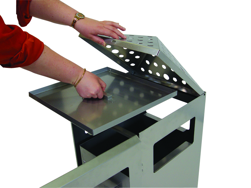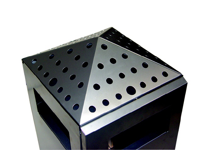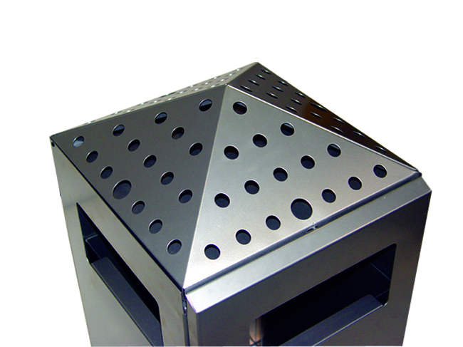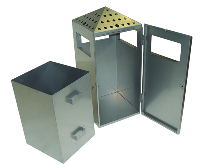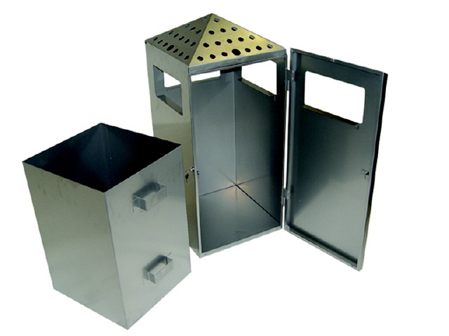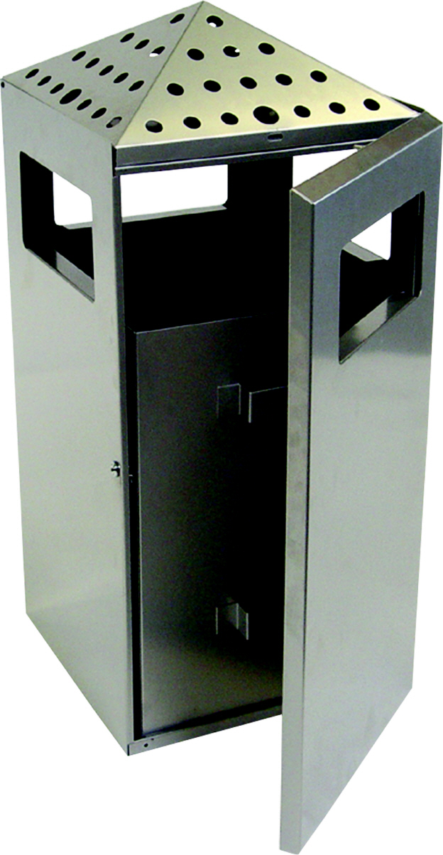 Diese Kombination aus Abfallbehälter und Ascher in Pyramidenform ist erhältlich in Edelstahl und Stahlblech pulverbeschichtet in verschiedenen Farben. Innenbehälter (75 Liter Inhalt) ist zum Entleeren herausnehmbar, Pyramide zum Hochklappen zum Entleeren des Aschereinsatzes!