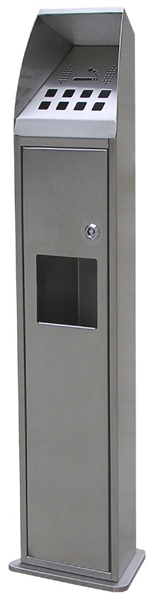 H 1000 mm x B 240 mm x T 190 mm, Fassungsvermögen Ascher: 0,6 Ltr. Abfallbehälter: 4 Ltr.