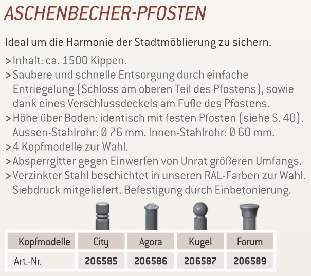 Aschenbecher-Pfosten - Ideal um die Harmonie der Stadtmöblierung zu sichern.