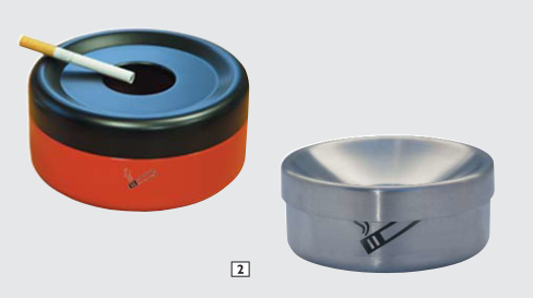 Sicherheits Tischascher “Rondo” Solide und robuste Ausführung aus Edelstahl oder Stahlblech pulverbeschichtet in verschiedenen Farben. Der Topf aus einem Stück nahtlos geformt. Durch den breiten Seitenrand können liegen gelassene Zigaretten nicht herausfallen.