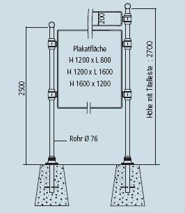 Ausführung mit unbeschriebener Titelleiste mit je zwei Schellen an den Pfosten