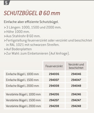 Art.-Nr.: 294206 = Verstärkte Bügel L 1000 mm