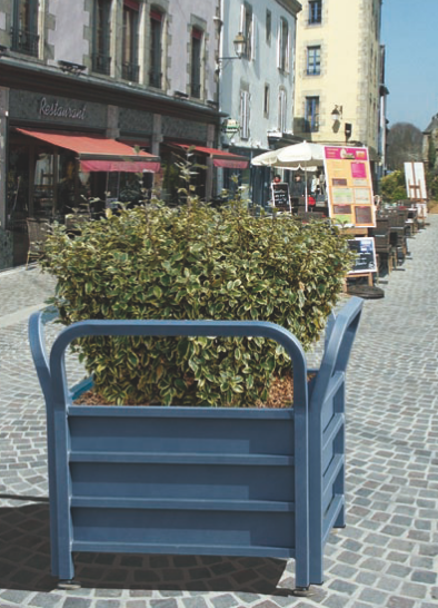Drei verschiedene Blumenkästen-Größen in perfekter Harmonie mit den anderen Elementen der Stadtmöbelserie Convi®.