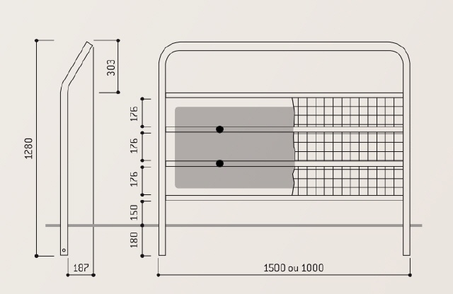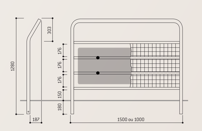 > Querholmen: Stahlrohre 30 x 30 mm; Bodenfreiheit: 150 mm.