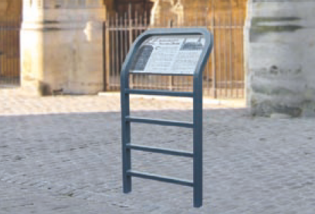 Dieses Geländer funktioniert wie ein Kreuzungsgeländer. Es bietet den Passanten außerdem zusätzliche nützliche Informationen (Straßennamen, Richtungen, touristische Informationen, ...). Es ist ideal für Gebäudevorplätze geeignet und harmoniert perfekt mit dem restlichen Stadtmobiliar.