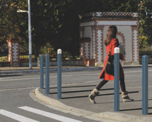 Da er größer ist als durchschnittliche Pfosten und mit einem weißem Kopf versehen ist, ist dieser Pfosten für Sehbehinderte leicht erkennbar und ermöglicht es, Fußgängerüberwege gefahrlos zu entdecken.