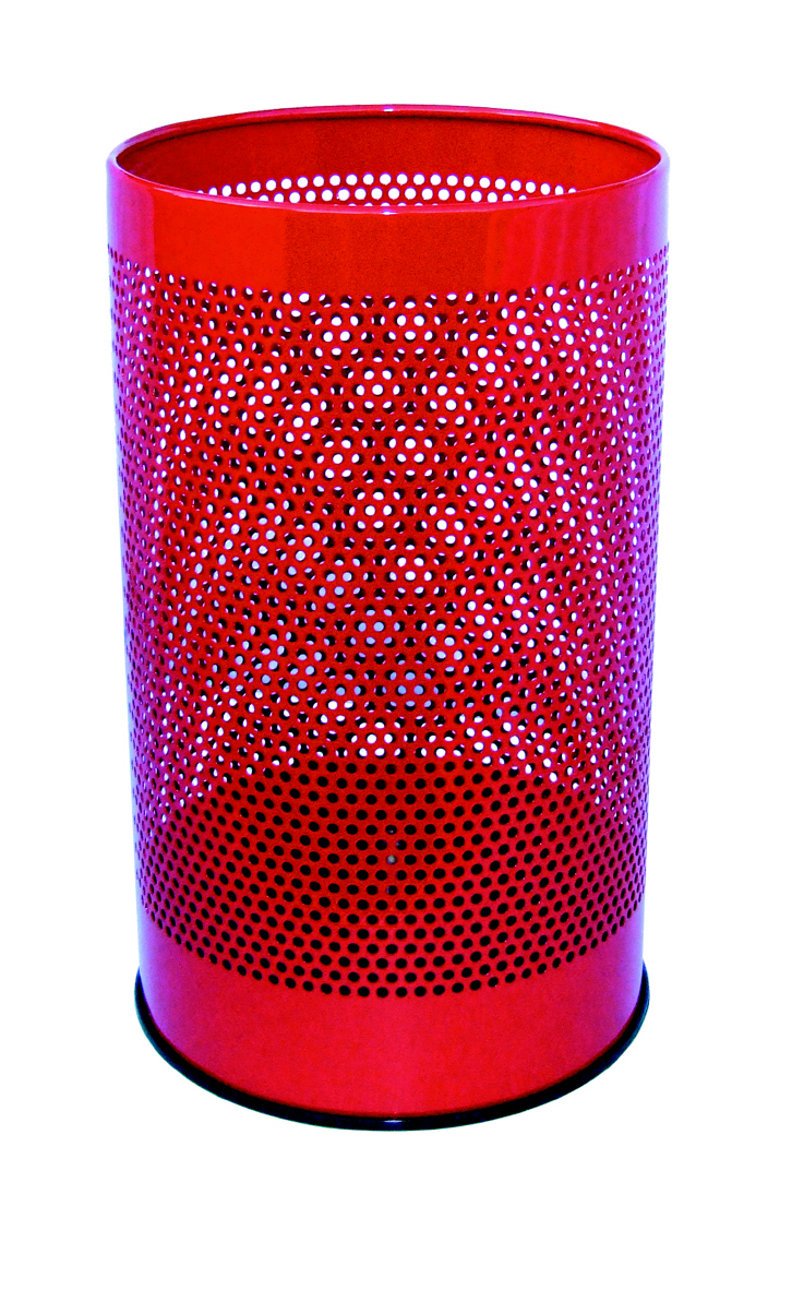 Behälter aus pulverbeschichtetem Lochstahlblech, Boden aus hitzebeständigem Kunststoff. In den 20- und 36 Liter Behältern befinden sich Kunststoffschalen, so dass die Behälter einfach auch als Schirmständer genutzt werden können.