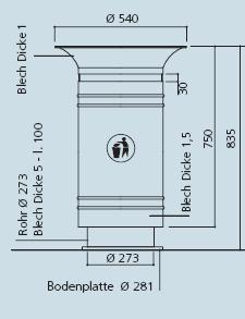 • Mit vier Füßen aus Flachstahl mit Löchern Ø 13 zur Befestigung am Boden.
