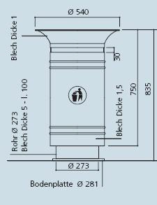 Abfallkörbe aus Stahl zur Montage oder Befestigung am Boden: