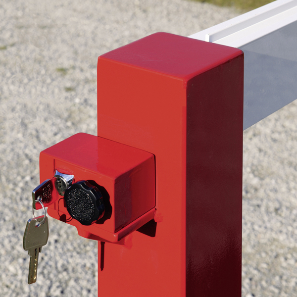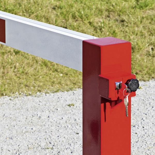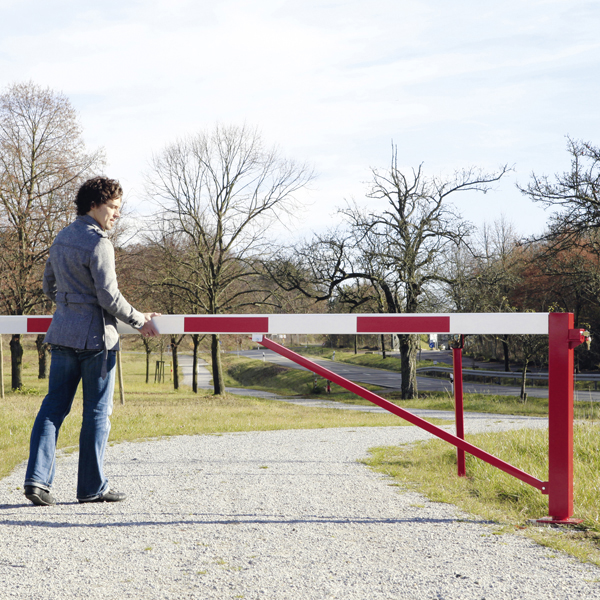 Leicht zu bedienende Schranke mit zwei Auflagepfosten für optimalen Schutz in geschlossener und geöffneter Position.