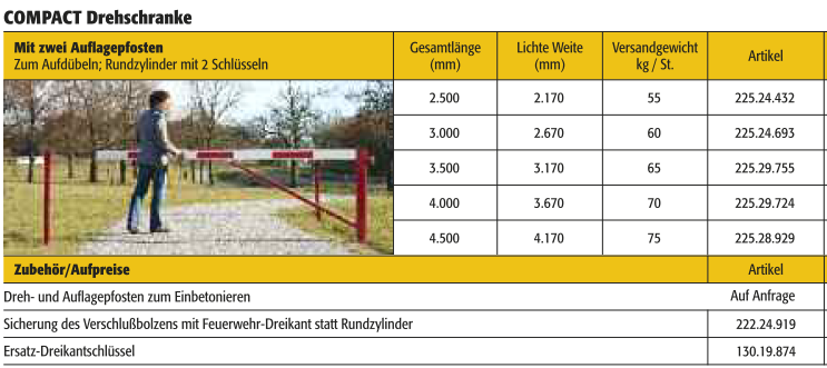 Umfangreiche Ausstattung der COMPACT Drehschranke: