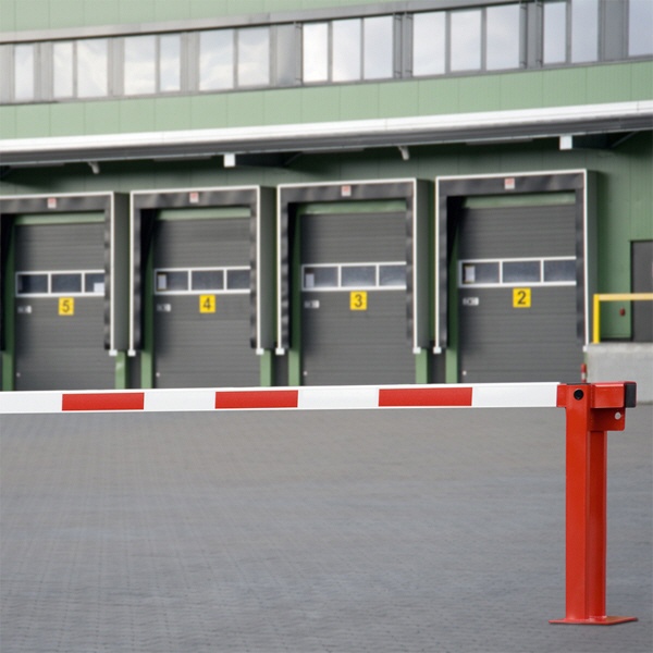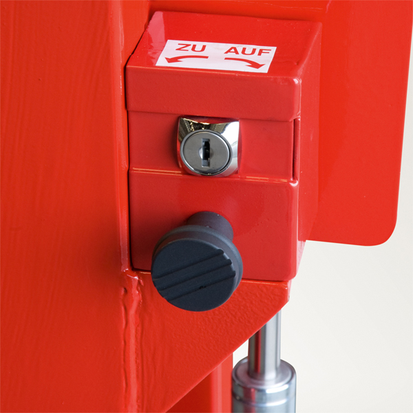 Der Verschlussbolzen der COMPACT Systemschranke rastet in offener und geschlossener Positition automatisch ein. Abschließbar durch verschiedenschließenden Rundzylinder.