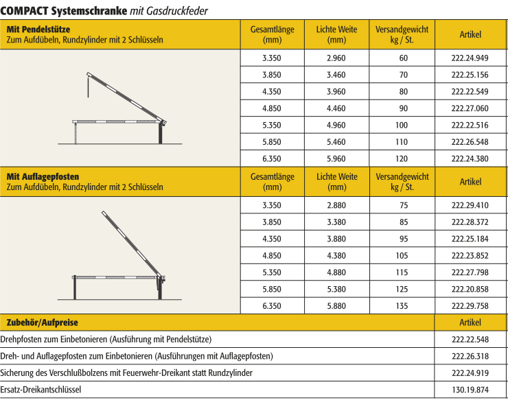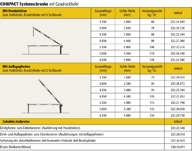 LINK: Montageanleitung COMPACT-Systemschranke mit Gasdruckfeder und Auflagepfosten (pdf) [189 KB]