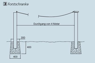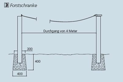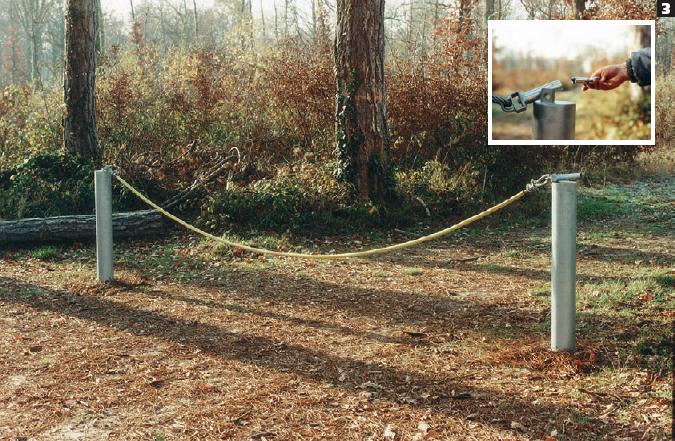 Kabel umhüllt mit einem gelbem Kunststoff Ø 17mm, Länge 5500 für Durchfahrten von 4000 Breite. Schließung durch aufbrechsicheres Vorhängeschloß, das speziell für diese Schranke entworfen wurde.