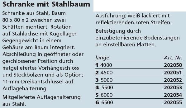 Schranke mit Stahlbaum