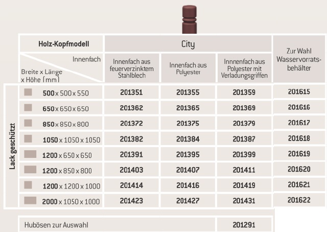 Ein sehr klassischer Palmenkasten. mit Kopfmodell City oder Kugel, in zahlreichen Abmessungen.