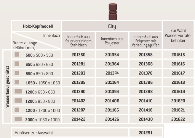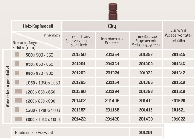 Ein sehr klassischer Palmenkasten. mit Kopfmodell City oder Kugel, in zahlreichen Abmessungen.
