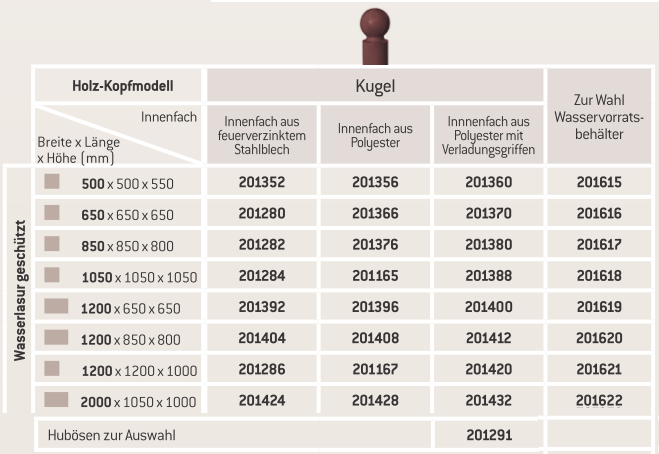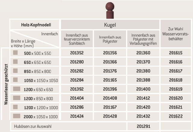 >Wasservorratsbehälter (inkompatibel mit Innenkasten aus feuerverzinktem Stahlblech).