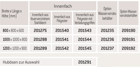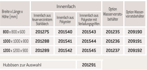>Wasservorratsbehälter (inkompatibel mit Innenkasten aus feuerverzinktem Stahlblech).
