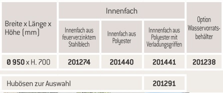 >Wasservorratsbehälter (inkompatibel mit Innenkasten aus feuerverzinktem Stahlblech).