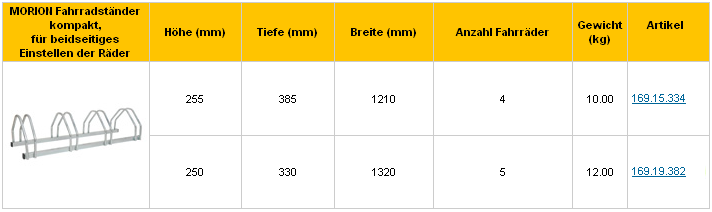 Merkmale für MORION Fahrradständer kompakt