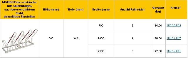 Merkmale der MORION Fahrradständer, mit Anlehnbügel