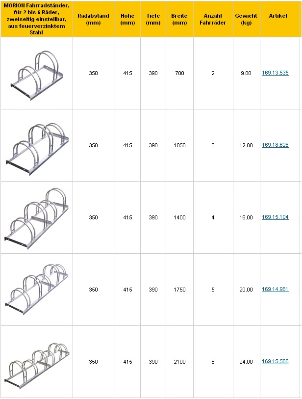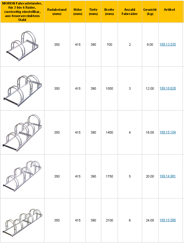 Fahrradständer zweiseitig für 2 bis 6 Räder