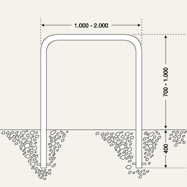 Als gestalterisches Element auf Plätzen und Fußgängerzonen. Kräftiges Edelstahlrohr mit 60 mm Durchmesser für dauerhaften Einsatz und hoher Formstabilität. Deutlich sichtbar durch 1.000 mm Überflurhöhe. Mit zusätzlichem Knieholm lieferbar.