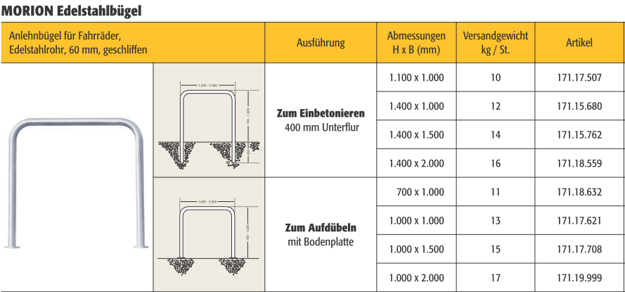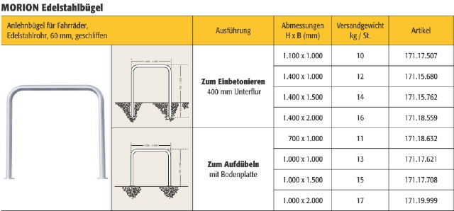 MORION Edelstahlbügel fügen sich hervorragend in die jeweilige Umgebung ein.