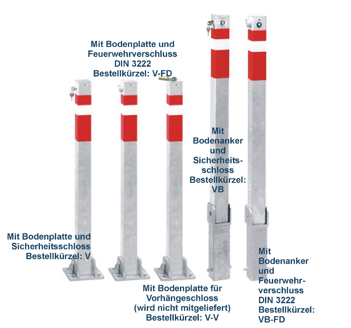 | V | Mit Bodenplatte und Sicherheitsschloss |
