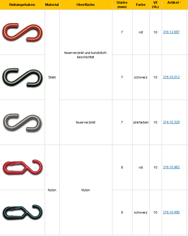 Sie sind hier: Startseite » Stadtmöblierung » Straßenmöbel / Parkmöbel / Stahlkörbe » Ketten Einhängehaken 216.12.687 216.10.012 214.10.329 216.10.962 216.10.490 Zum Vergrößern auf die Grafik klicken Aktion war erfolgreich Das hat leider nicht geklappt. Warenkorb anzeigen <<< --- Zur Kasse gehen ------- Weiter einkaufen Welche Artikelnummer?: Bitte wählen Sie aus! 216.12.687 = rot, 7mm, VE 10 Stück 216.10.012 = 7 mm, schwarz, VE 10 Stück 214.10.329 = 7 mm, zinkfarben, VE 10 Stück 216.10.962 = 8 mm, rot, Nylon, VE 10 Stück 216.10.490 = 8 mm, schwarz, Nylon, VE 10 Stück Anzahl: St In den Warenkorb Auf den Merkzettel