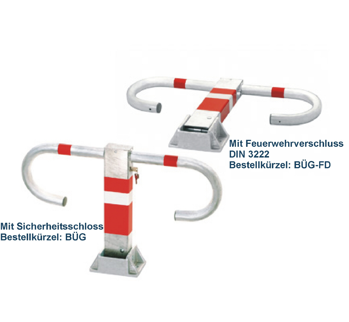 Mittelpfosten 100x60 mm, 50 cm hoch, Bügelrohr Ø 43 mm. Gesamtbreite 80 cm, feuerverzinkt, Oberteil rot/weiß reflektierend.