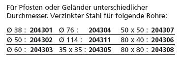 Für Pfosten oder Geländer unterschiedlicher Höhe und Durchmesser (siehe bei: Welche Artikelnummer?".