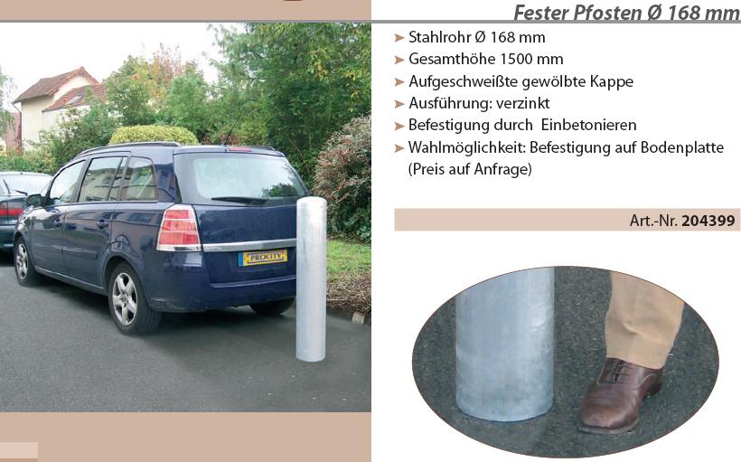 Sie sind hier: Startseite » Stadtmöblierung » Straßenmöbel / Parkmöbel / Stahlkörbe » Pfosten/Poller/Bodenhülsen Fester Pfosten Ø 168 mm Fester, stabiler Pfosten zur Abgrenzung von Parkplätzen. Aktion war erfolgreich Das hat leider nicht geklappt. Warenkorb anzeigen <<< --- Zur Kasse gehen ------- Weiter einkaufen Artikel-Nr.: pro-204399 kurzfristig lieferbar in max. 1-2 Wochen...genaue Angabe bei Angebotsanforderung! 140,42 EUR Preis enthält 19% USt. zzgl. ggf. Versandkostensiehe: Versand / Widerrufsrecht...Fragen zum Produkt?...Tel. 05671 2549 Versand-Gewichtsklasse: 999 kg Anzahl: St In den Warenkorb Auf den Merkzettel 204399