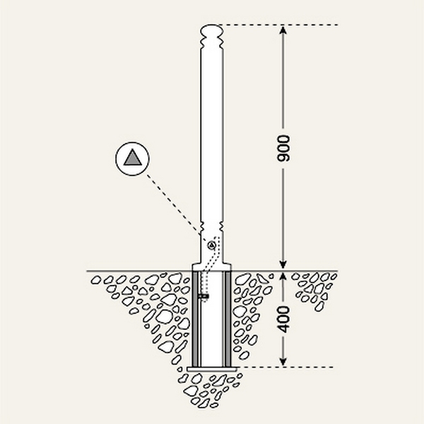 • Herausnehmbar (400 mm Unterflur) mittels Dreikantschlüssel (DIN 3223).