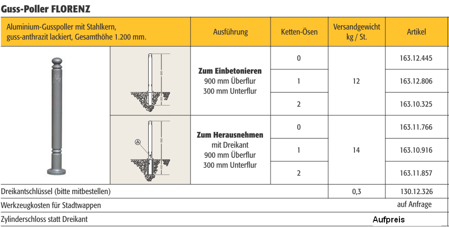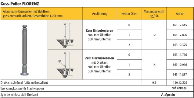 "Guss-Poller FLORENZ" ist ein Schlagwort der Produktgruppe "CITY-Poller FLORENZ".