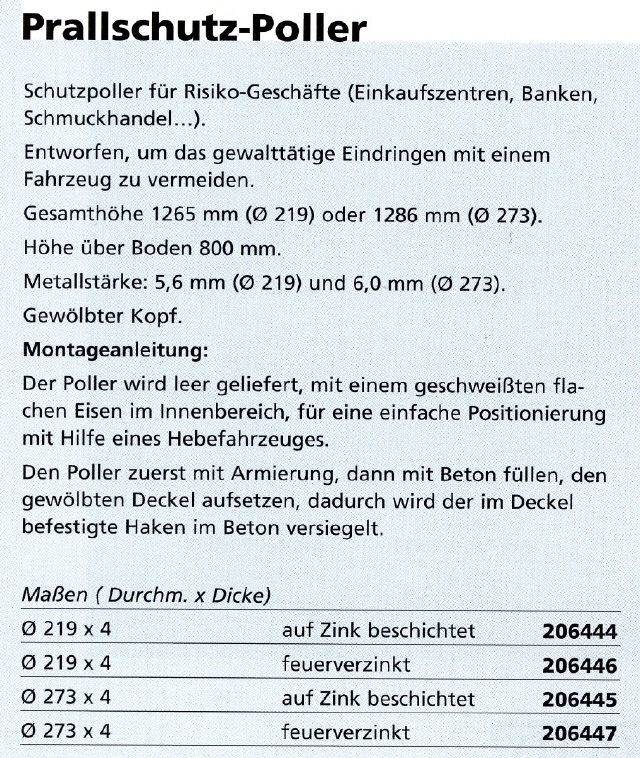 Schutzpoller für Einkaufszentren, Banken etc. um das gewaltätige Eindringen mit einem Fahrzeug zu verhindern.