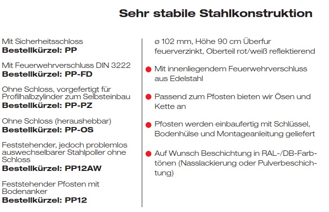 ø 102 mm, Höhe 90 cm Überfur feuerverzinkt, Oberteil rot/weiß reflektierend