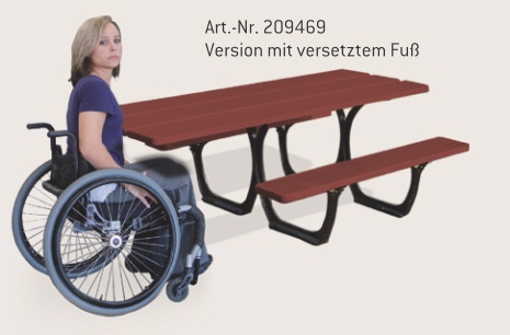 Mehr Komfort und mehr Platz für diesen Picknick-Tisch. Auch erhältlich mit einem versetzten Fuß (vereinfachte teilnahme für Rollstühle).