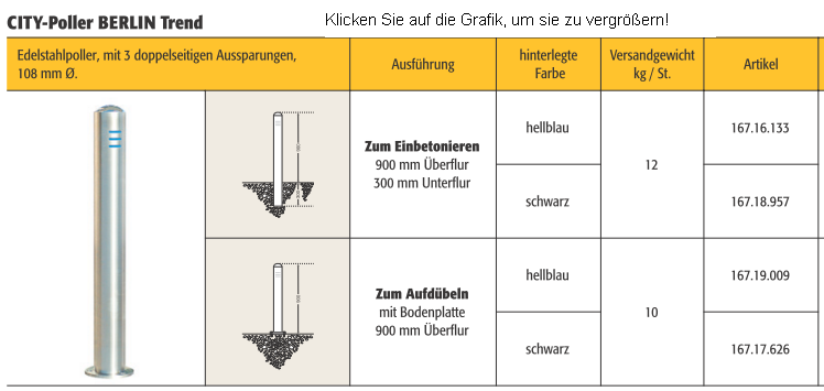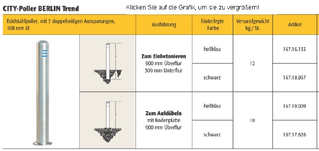 Der CITY-Poller BERLIN Trend ist Edel im Material, in den Proportionen und in der aufwändigen Verarbeitung. Der nahtlose Übergang zur hochglanzpolierten Kappe verleiht dem Poller einen noblen Charakter.