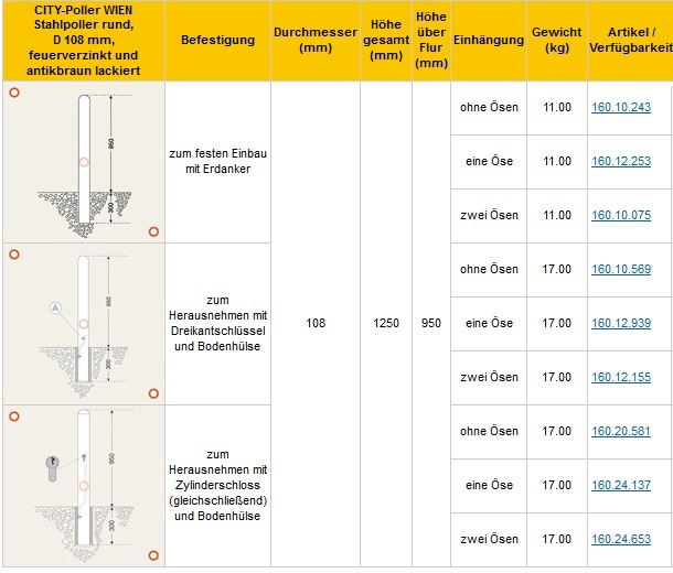 CITY-Poller WIEN 76, 90 oder 108 mm Ø