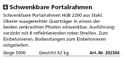 Sie sind hier: Startseite » Stadtmöblierung » Straßenmöbel / Parkmöbel / Stahlkörbe » Portalrahmen Schwenkbare Portalrahmen Schwenkbarer Portalrahmen Der Preis ändert sich bei Auswahl des Artikels! Aktion war erfolgreich Das hat leider nicht geklappt. Warenkorb anzeigen <<< --- Zur Kasse gehen ------- Weiter einkaufen Artikel-Nr.: pro-202304 kurzfristig lieferbar in max. 1-2 Wochen...genaue Angabe bei Angebotsanforderung! 606,90 EUR Preis enthält 19% USt. zzgl. ggf. Versandkostensiehe: Versand / Widerrufsrecht...Fragen zum Produkt?...Tel. 05671 2549 Versand-Gewichtsklasse: 999 kg Anzahl: St In den Warenkorb Auf den Merkzettel 202304