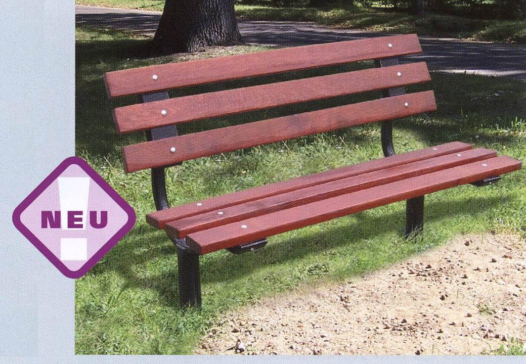 Holzsitzbank, Rückenlehne und Sitz aus exotischem Holz.