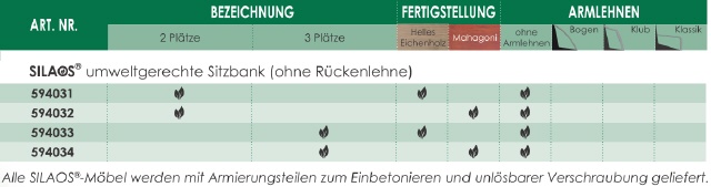 Alle SILAOS ® -Möbel werden mit Armierungsteilen zum Einbetonieren und unlösbarer Verschraubung geliefert.