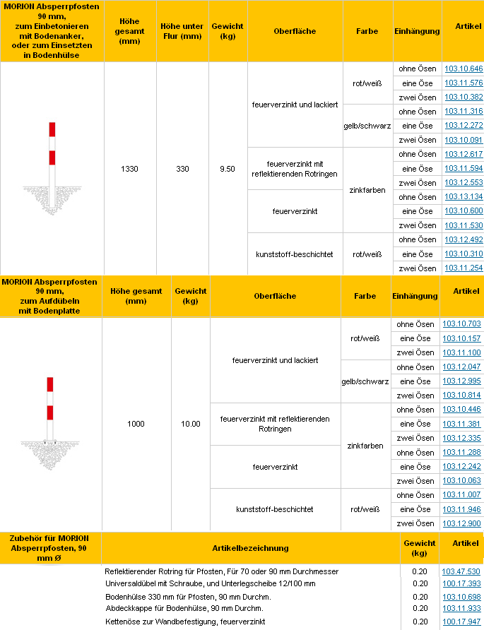 Der MORION Sperrpfosten ist der klassische feststehende Absperrpfosten zum Abgrenzen von Fahrbahnen, Gehwegen, Parkplätzen, ...