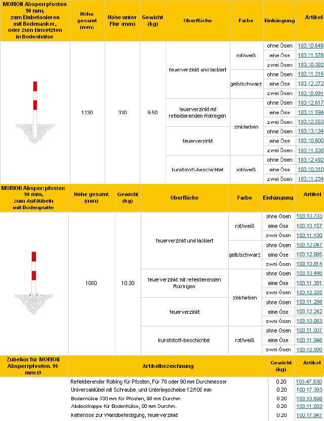 MORION Sperrpfosten sind abgestimmt mit dem MORION Systemgeländer, den Kipp-Pfosten SESAM und den herausnehmbaren PARAT-Sperrpfosten. Sie lassen sich daher ideal untereinander kombinieren.
