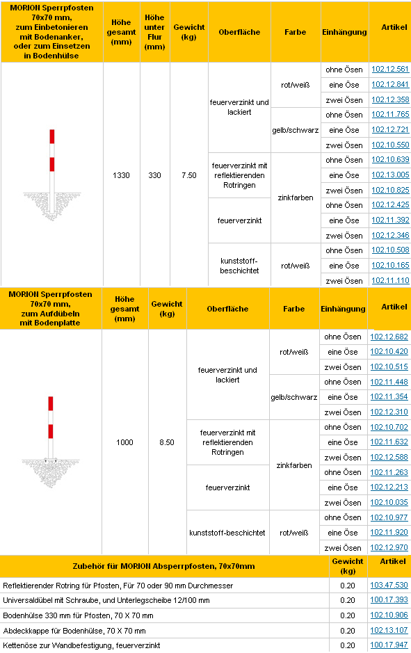 Der MORION Sperrpfosten ist der klassische feststehende Absperrpfosten zum Abgrenzen von Fahrbahnen, Gehwegen, Parkplätzen, ...