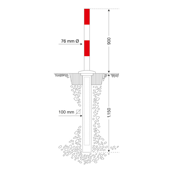 Der Pfosten kann mit Überflur-Hydrandtenschlüssel nach DIN 3223 in Sekunden versenkt werden: Der Verkehr kann die nahezu bündig einbetonierte Bodenhülse ungehindert überrollen.