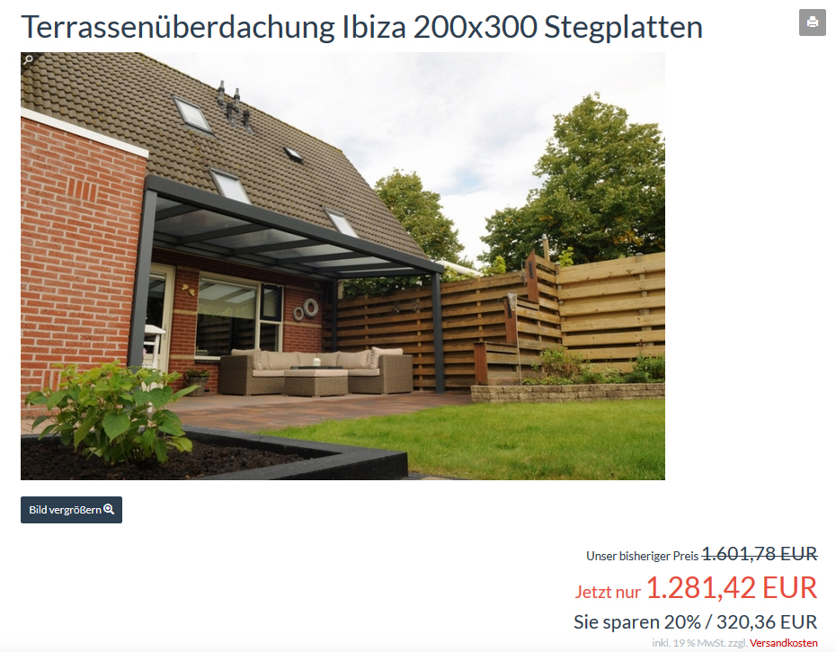 Terrassenüberdachung Ibiza 200x300 Stegplatten